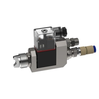 根據介質的粘度,有不同的噴嘴尺寸可供選擇。材料可以通過壓力容器或泵供應。噴霧閥適用于連續和間歇空氣輔助霧化。由于霧化空氣的內部控制,只需要一個用于控制空氣的 3/2 通閥即可觸發 GSD。